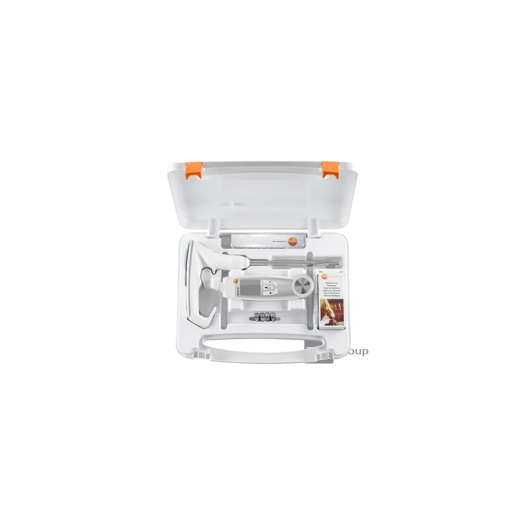 - 1 x testo 104-IR BT vandeniui atsparus infraraudonųjų spindulių ir skverbiamas termometras su baterijomis, mokymo kortele, kalibravimo protokolu ir trumpu vadovu
