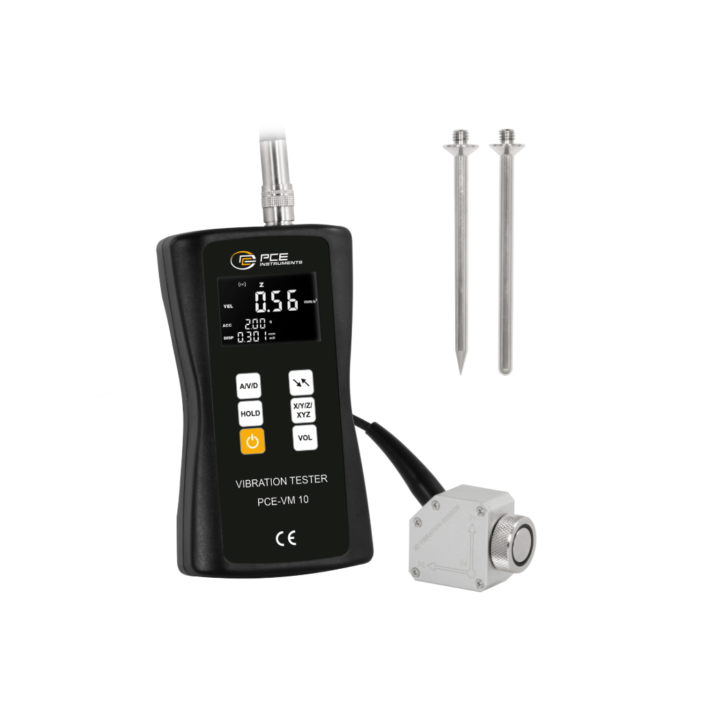 PCE-VM 10 – tai profesionalus 3 ašių vibracijos matuoklis, leidžiantis greitai ir tiksliai nustatyti mechaninius sutrikimus. Prietaisas matuoja pagreitį, greitį ir poslinkį visomis kryptimis (X, Y, Z), todėl suteikia pilną vaizdą apie įrenginio būklę.