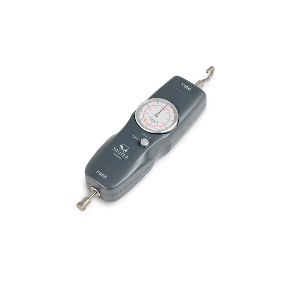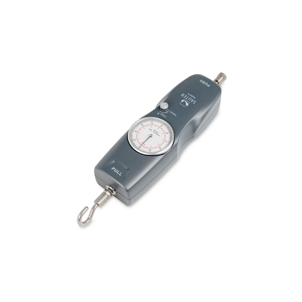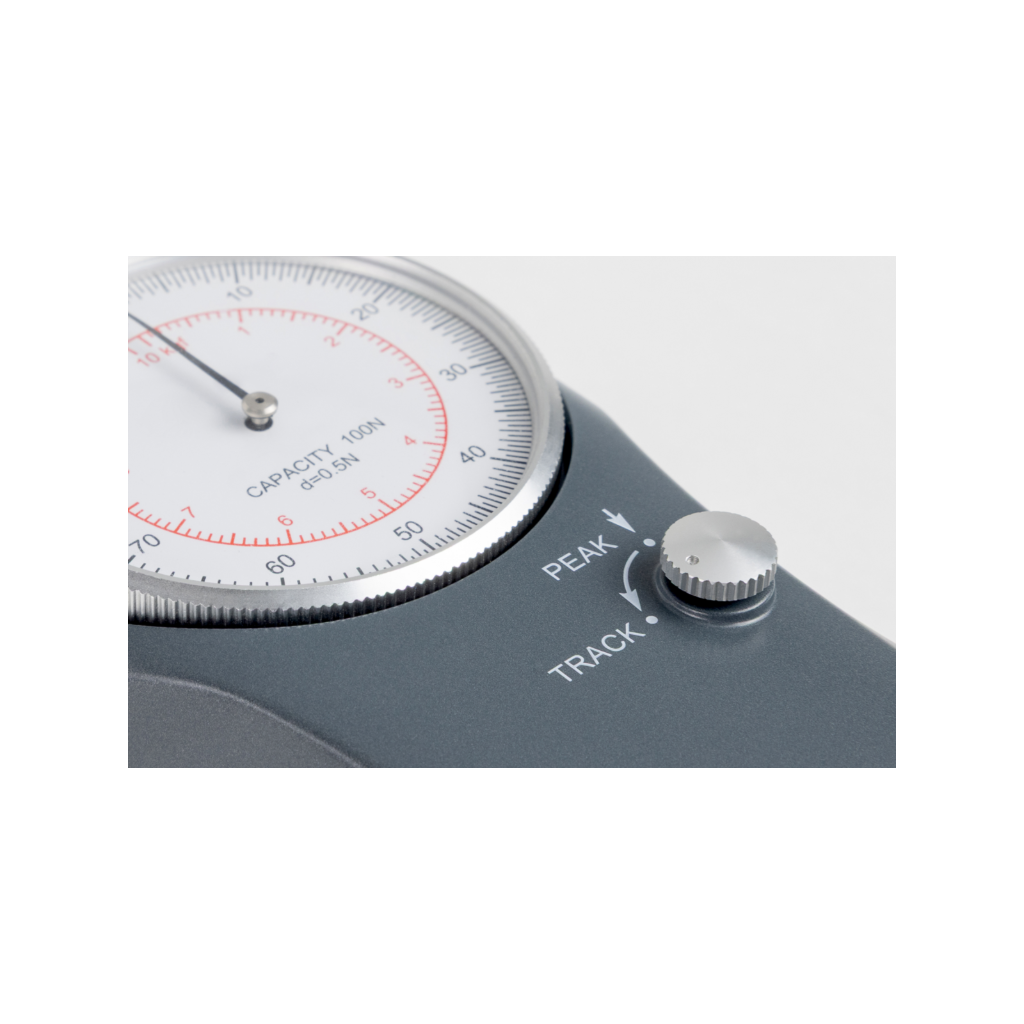 Mechaninis jėgos matuoklis su piko išlaikymo funkcija; naujas, su tvirtu aliuminio korpusu ir moderniu dizainu. Matavimo riba 100 N