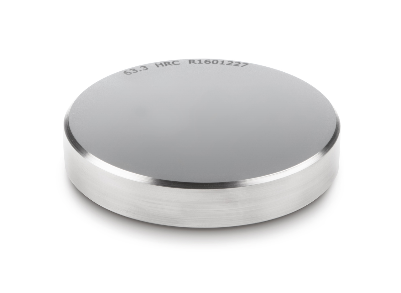 Plokščių pagrindinis privalumas – smulkiagrūdė, vienalytė plieno struktūra, ∅ 90 mm; tinkamos kietumo matavimo prietaisui; 48–53 HRC; medžiaga: nerūdijantis plienas.