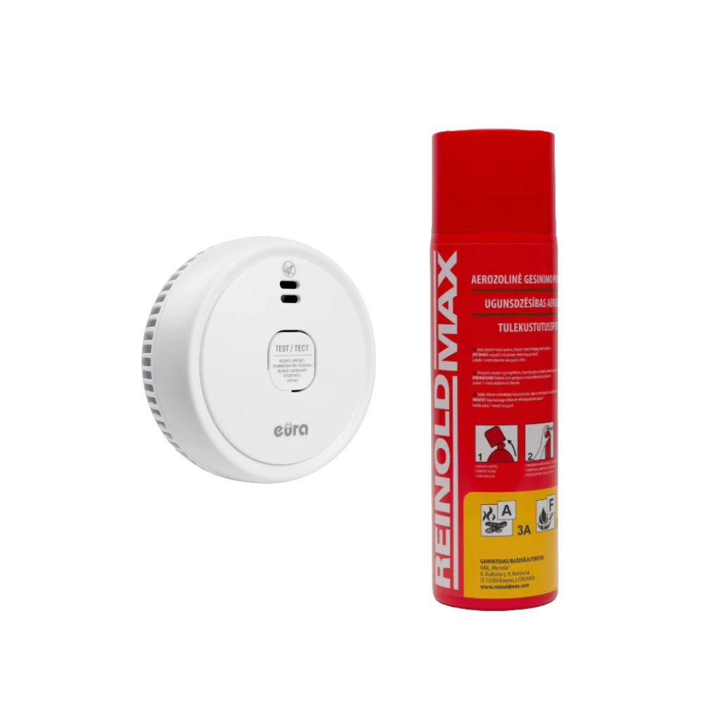 Dūmų detektoriaus ir gesintuvo rinkinys EUR-09Dūmų detektoriaus ir gesintuvo rinkinys EUR-09