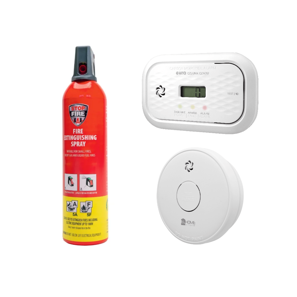 Smalkių ir dūmų detektorių bei gesintuvo rinkinys EUR-17 – viskas, ko reikia jūsų namų ar darbo erdvės saugumui užtikrinti! Smalkių ir dūmų detektorių bei gesintuvo rinkinys EUR-17 skirtas apsisaugoti nuo pavojingų situacijų ir užtikrinti ankstyvą grėsmių aptikimą. Rinkinyje esančios prekės yra atskirose pakuotėse.