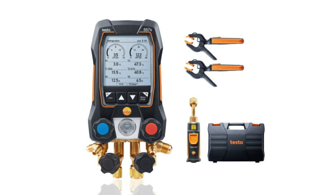 Iš karto pradėkite belaidžius šaldymo ir oro kondicionavimo sistemų bei šilumos siurblių matavimus. Pateikto Bluetooth vakuuminio zondo dėka jūs netgi galite išmatuoti vakuumą be jokių kabelių ar žarnų. Gausite Testo 557s išmanųjį skaitmeninį kolektorių su Bluetooth ir 4 krypčių vožtuvų bloku, vieną Testo 552i belaidį vakuuminį zondą, du belaidžius Testo 115i spaustukų termometrus ir tvirtą transportavimo dėklą. Atliekant kitus belaidžius matavimus, idealiai tinka ir kiti pasirinktinai įsigyti Testo Smart probes.