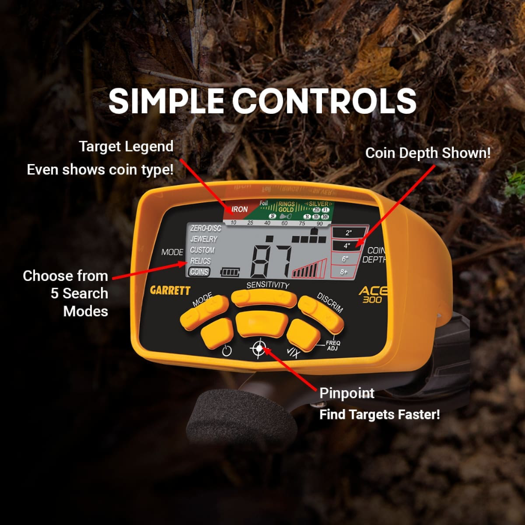 ACE 300 yra puikus metalo detektorius tiek pradedantiesiems, tiek patyrusiems naudotojams. Dėl patogaus LCD ekrano ir penkių skirtingų paieškos režimų šis prietaisas yra labai lengvai valdomas ieškant monetų, sidabro ir net aukso. Jame taip pat yra patobulintos funkcijos, pritaikytos patyrusiems metalo detektorių entuziastams.