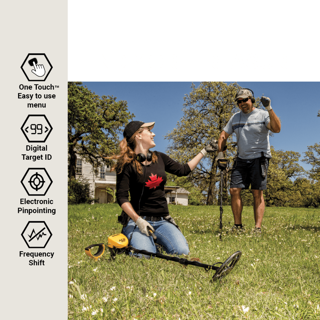 Šis modelis komplektuojamas su 18 × 25 cm (7″ × 10″) PROformance™ ritė, kuri yra atspari vandeniui ir suteikia didesnį aptikimo plotą bei gylį paieškoje. Taip pat komplekte yra ClearSound Easy Stow ausinės su garso kontrole, ACE panelės apsauginis dangtelis ir ritės apsauga.