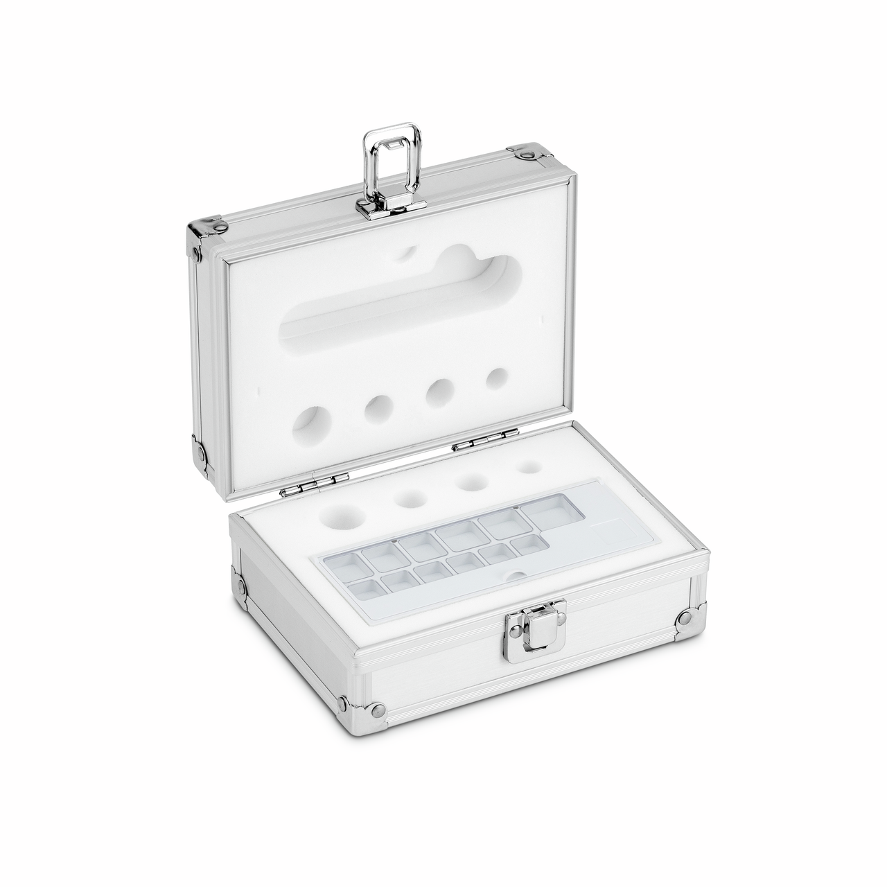 Nemokamai atsiimkite Vilniuje, Riovonių g. 2A. Apie paruoštą prekę atsiėmimui Jus visada informuosime telefonu arba el. paštu.Aliuminė svarelių dėžutė 313-020-600, nominalioms vertėms 1 mg – 50 g, klasėms E1 – M1, dizainas: cilindrinė/kompaktiška