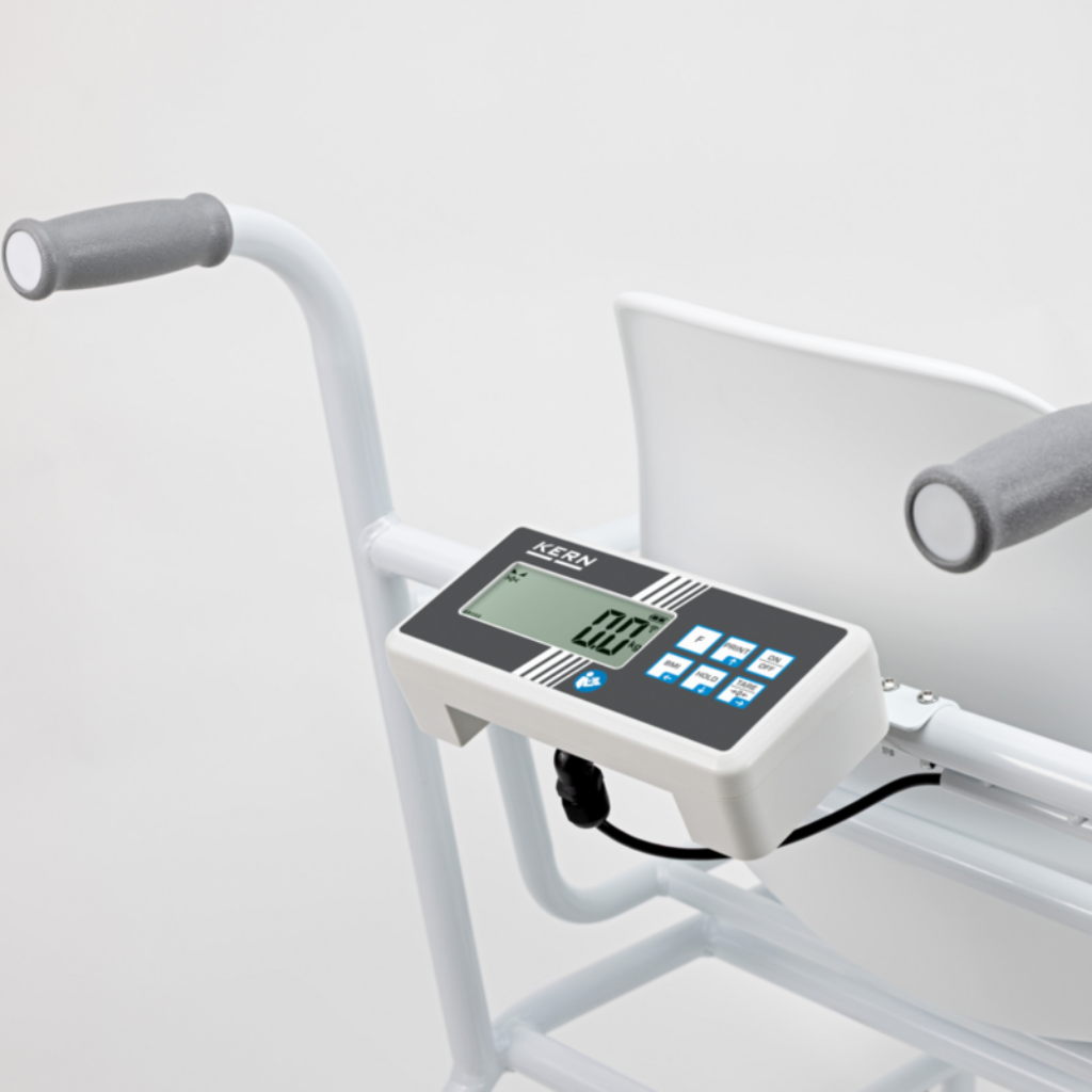 Kėdės tipo svarstyklės KERN – saugus svėrimas sėdint su medicininiu tikslumu