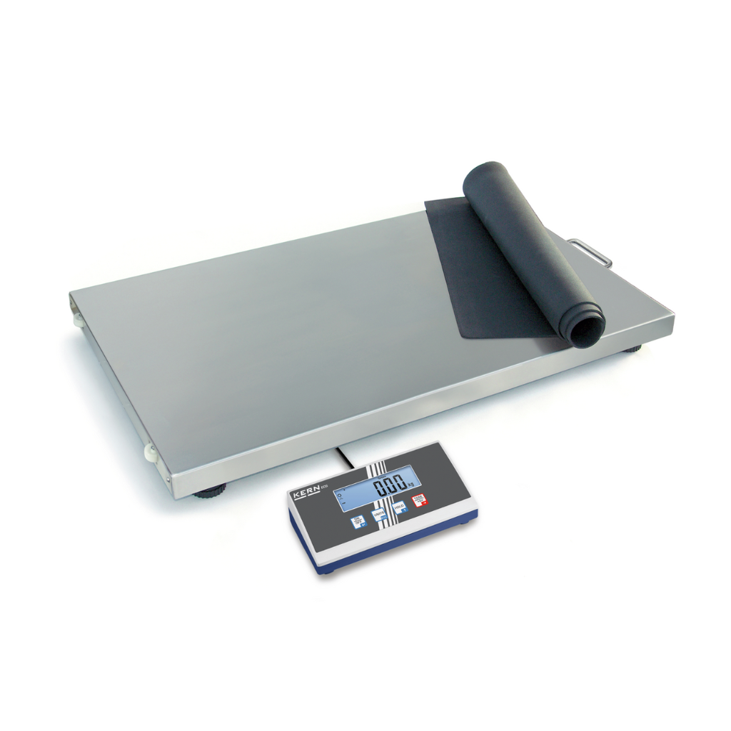 Platforminės svarstyklės KERN EOS 150K50XL – tvirtos konstrukcijos siuntinių arba veterinarijos platforminės svarstyklės su ypač didele nerūdijančio plieno svėrimo plokšte.