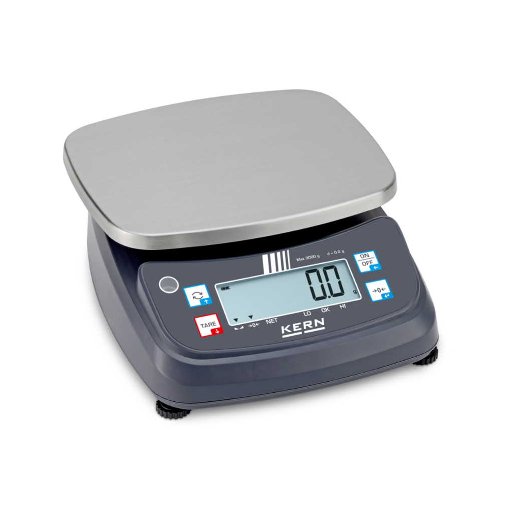 Stalinės svarstyklės KERN FPE 3K-4 – pradinio lygio stalinės svarstyklės su nerūdijančio plieno svėrimo platforma ir kontrolinio svėrimo funkcija.
