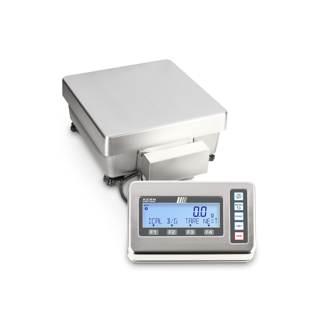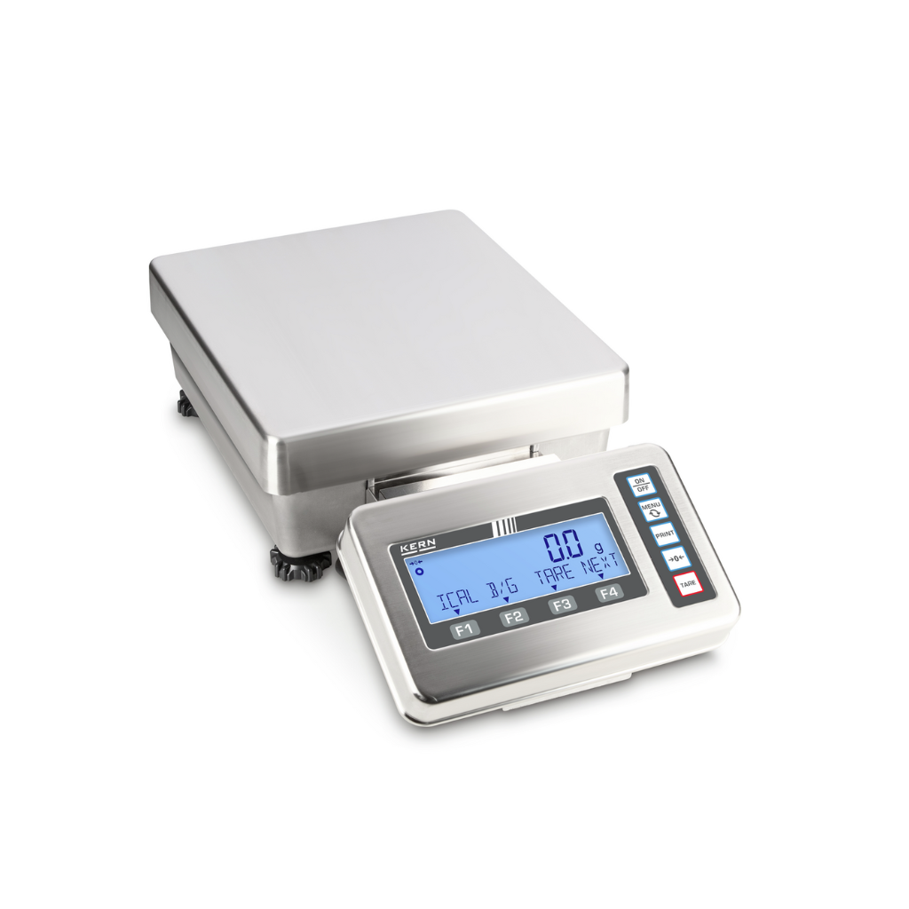 - Tiksliosios svarstyklės KERN FES 62K-4D su nerūdijančio plieno ekranu (IP65 apsauga, higieniškas ir lengvai valomas).