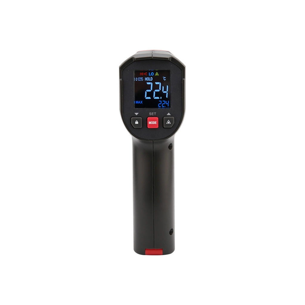 Infraraudonųjų spindulių termometras yra tvirtas ir intuityvus naudoti prietaisas, leidžiantis tiksliai išmatuoti paviršiaus temperatūrą neliečiant tiriamo objekto. Siūlo platų matavimo diapazoną, ℃/℉ matavimo vienetų pasirinkimą, lengvai įskaitomą EBTN-LCD ekraną ir MAX, MIN, AVG bei DIF funkcijas, skirtas ekstremalioms, vidutinėms ir diferencinėms vertėms analizuoti. Termometras automatiškai išsijungia, kai baigia matuoti, o išsikrovusio akumuliatoriaus indikatorius praneša, kada reikia pakeisti akumuliatorių. Prietaisas atitinka CE ir UKCA standartus, kurie garantuoja aukštą kokybę ir saugų naudojimą.
