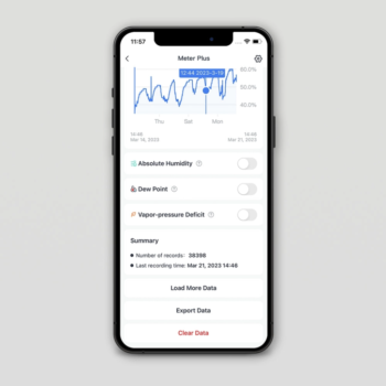 SwitchBot Meter Plus išsiskiria didesniu LCD ekranu, kuriame aiškiai rodoma temperatūra, drėgmė, komforto indikatorius bei paros maksimalios ir minimalios reikšmės. Integruotas „Bluetooth Low Energy“ (BLE) ryšys leidžia patogiai peržiūrėti duomenis „SwitchBot“ programėlėje. Naudojant kartu su SwitchBot Hub (Mini arba Plus), įrenginys gali būti stebimas nuotoliniu būdu per „Wi-Fi“ ir integruojamas į išmaniųjų namų sistemą.