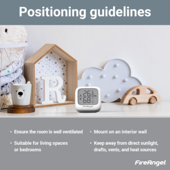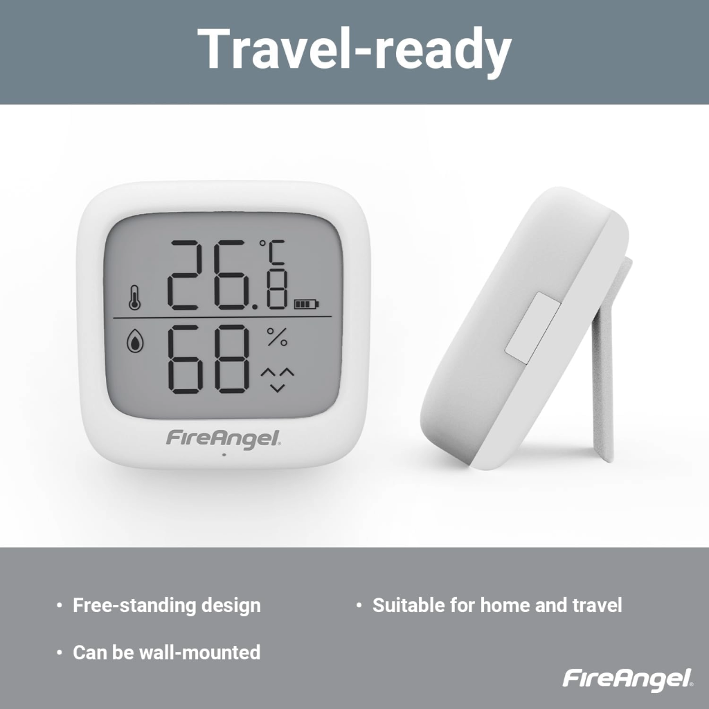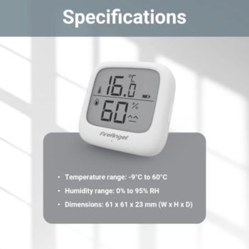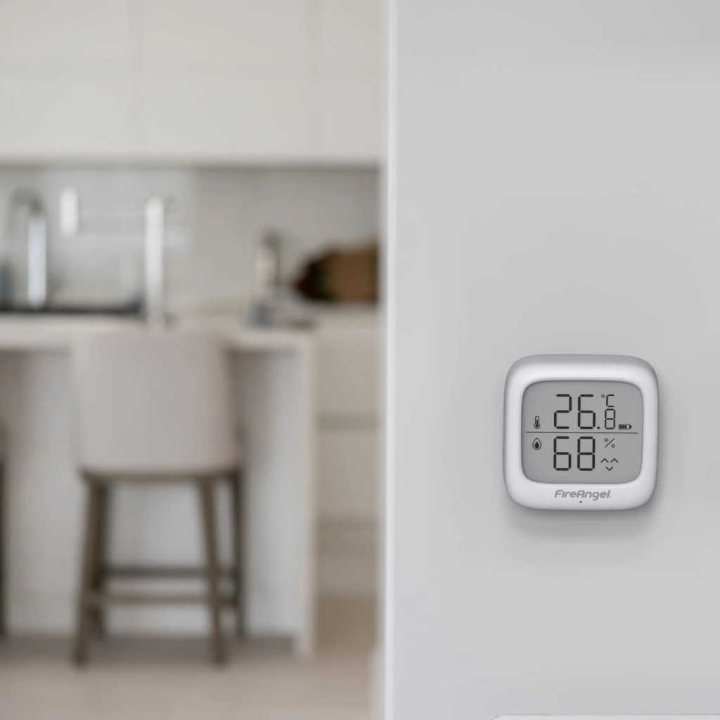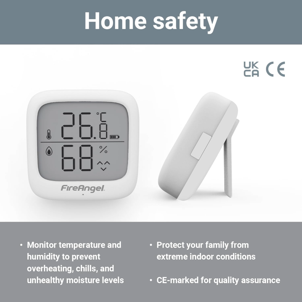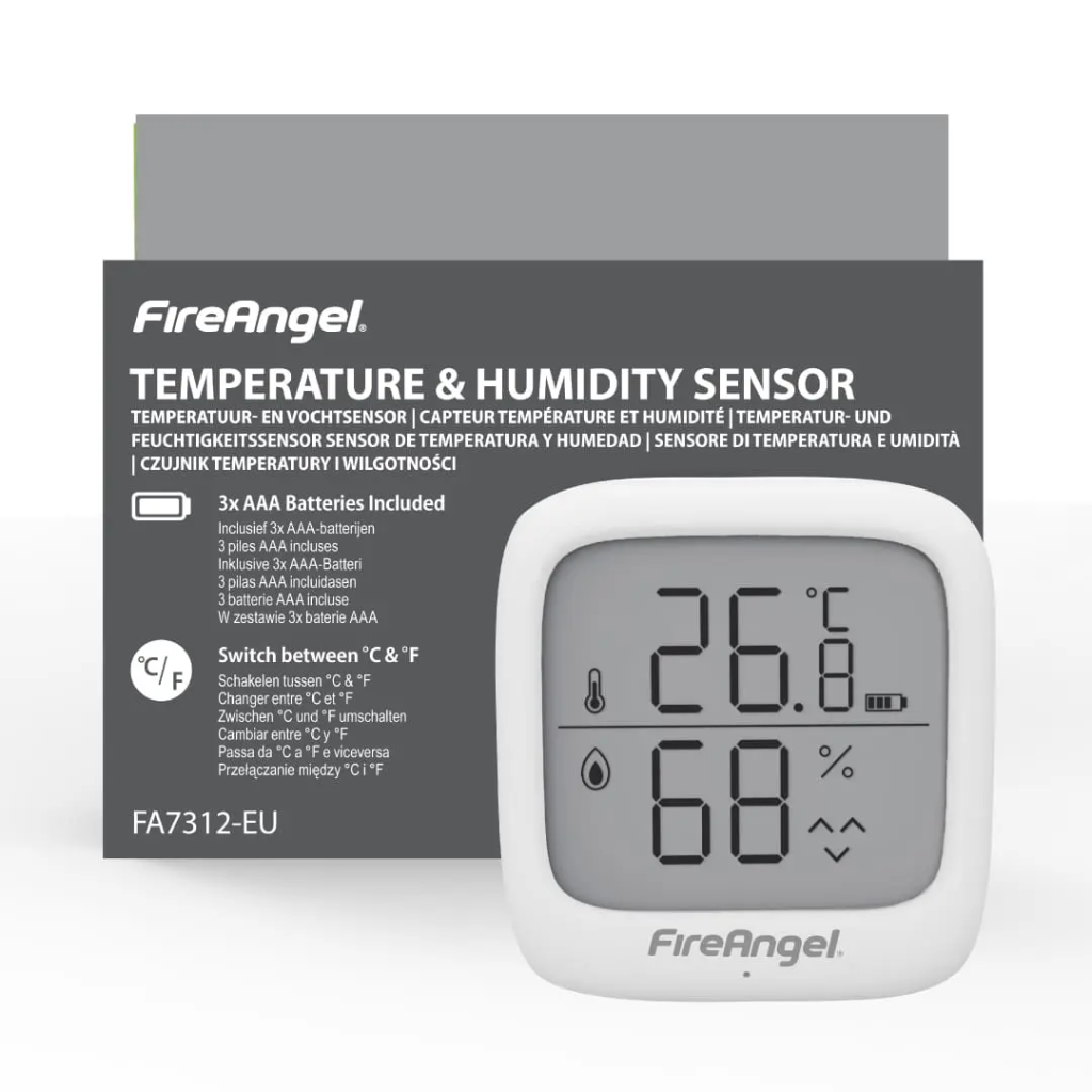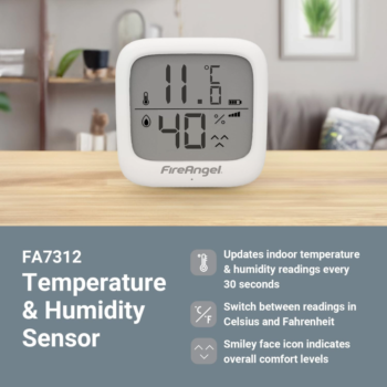 Temperatūros ir drėgmės jutiklis su LCD ekranu FireAngel FA7312-EUX4 kas 30 sekundžių atnaujina temperatūros (°C ir °F) bei drėgmės rodmenis, naudodamas integruotą higrotermografo jutiklį. Papildoma komforto indikacija – ekrane rodoma šypsenėlės piktograma – padeda greitai įvertinti, ar patalpos sąlygos yra komfortiškos, ar jau vertėtų imtis veiksmų. Tai ypač naudinga vaikų kambariuose, miegamuosiuose ar patalpose, kuriose gyvena vyresnio amžiaus žmonės.