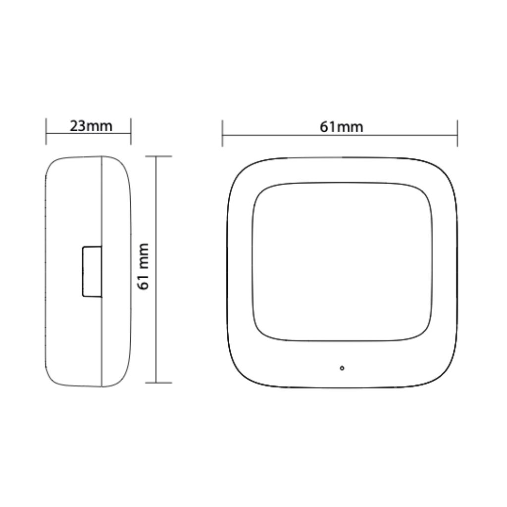- Matmenys 61 mm (plotis) x 61 mm (aukštis) x 23 mm (gylis)